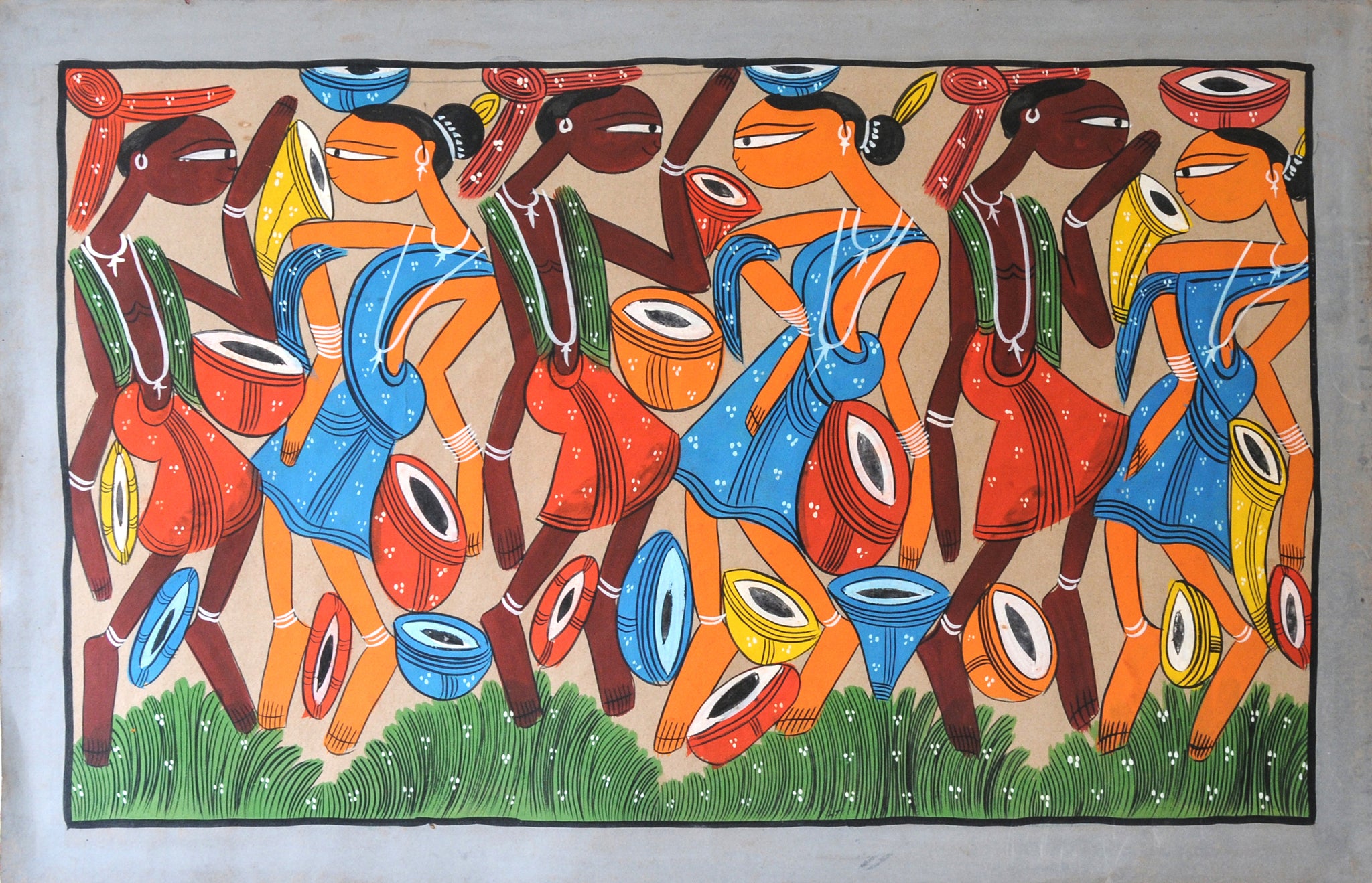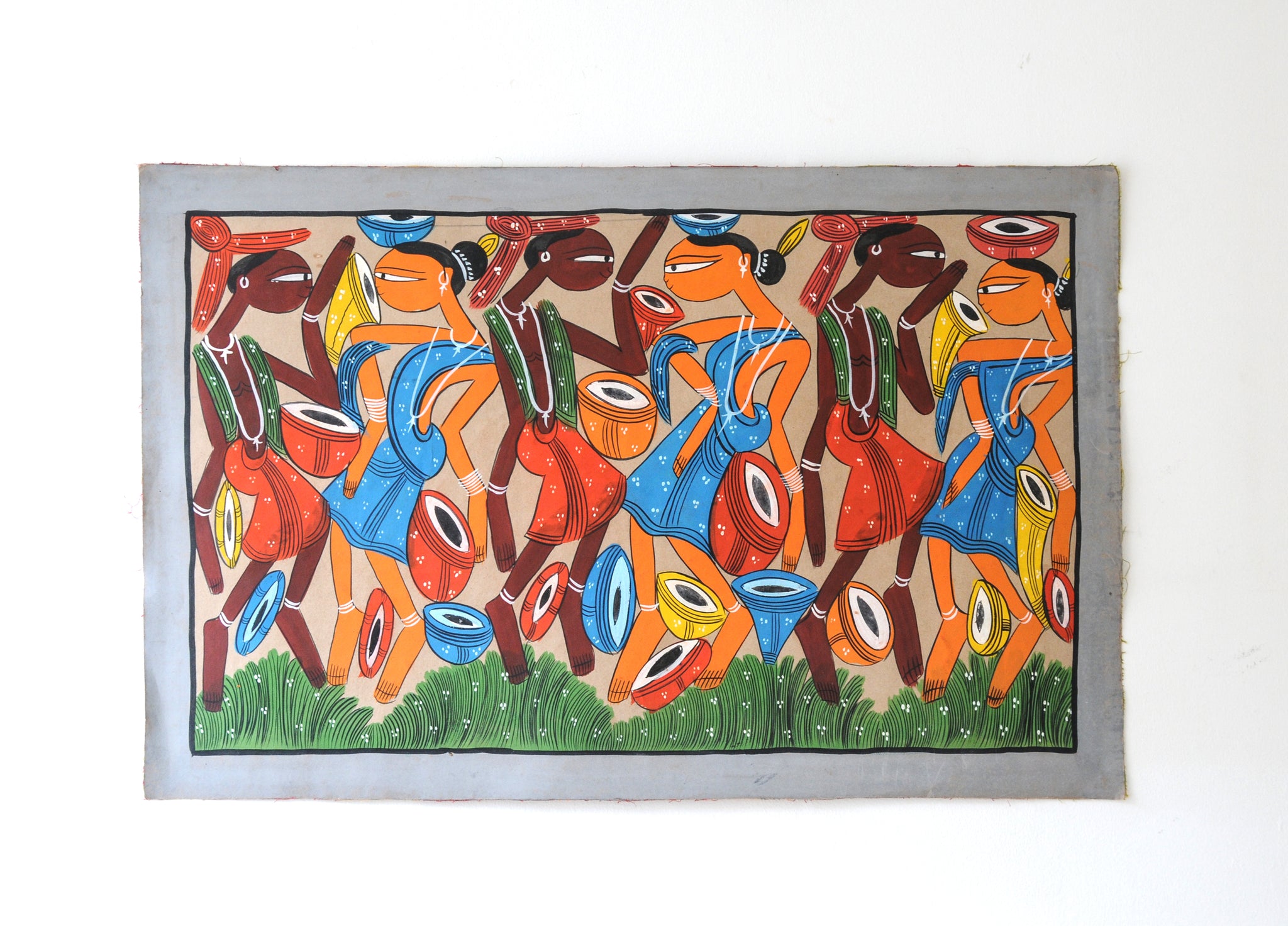 Contemporary Bengali Pattachitra, ink on cloth, natural colours, un-framed
