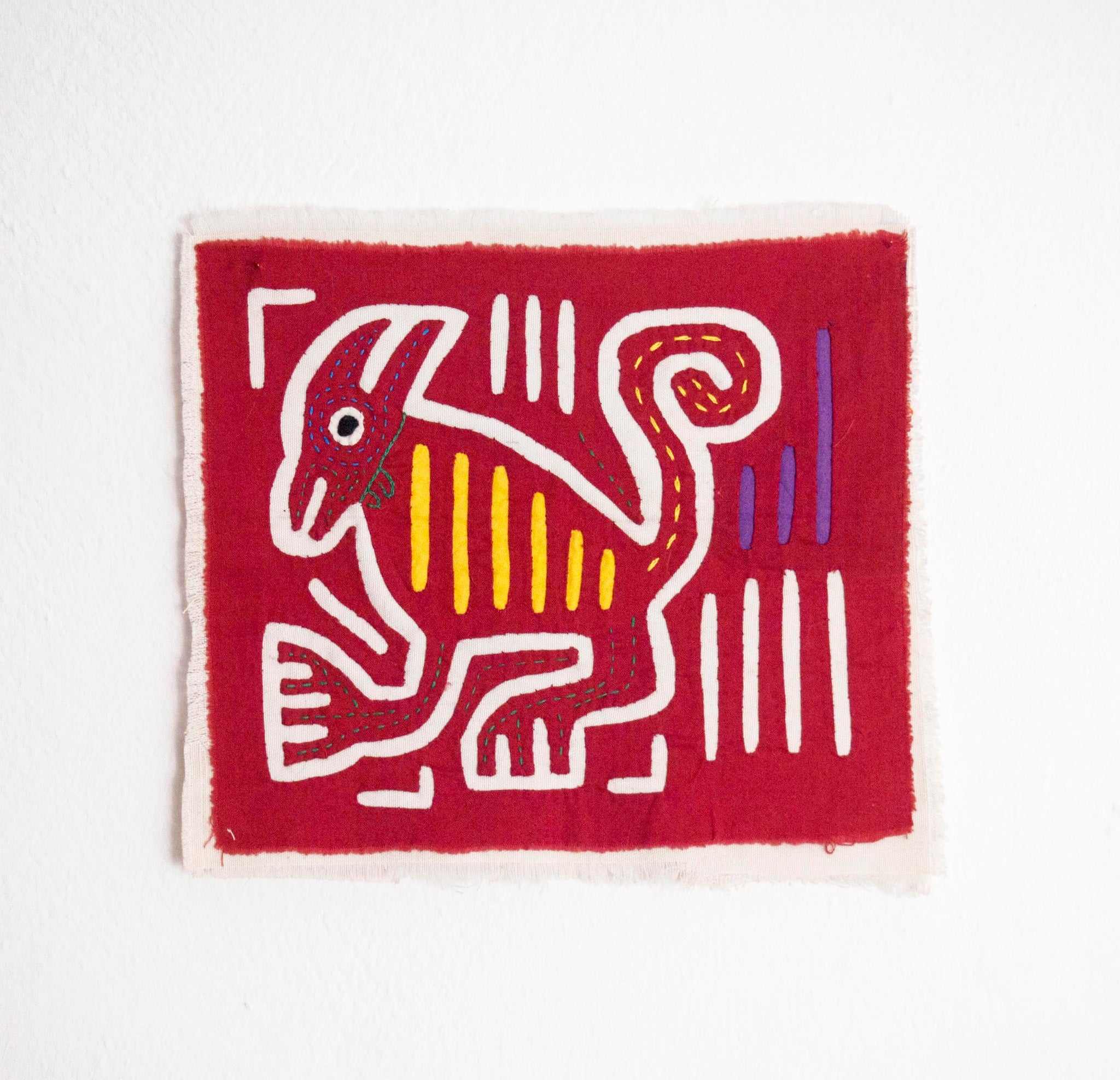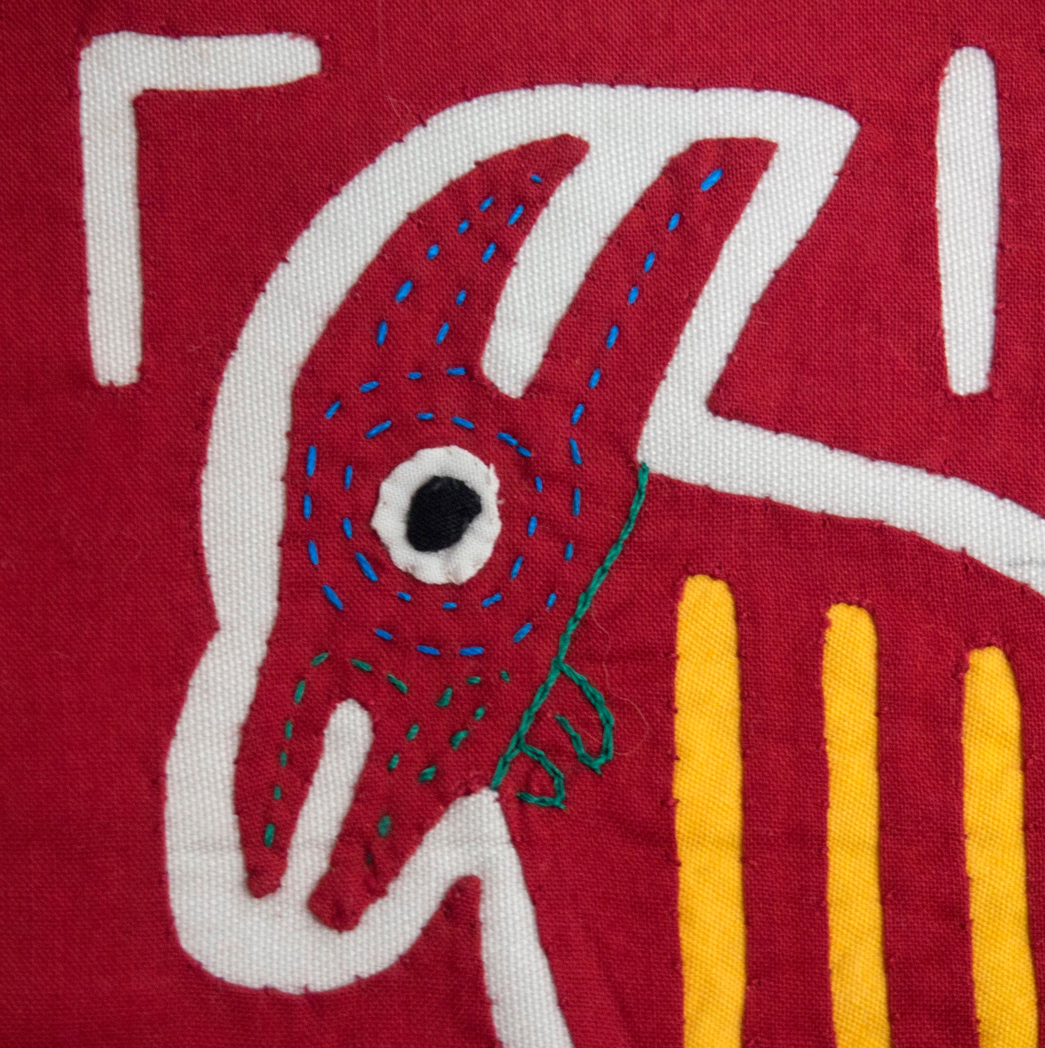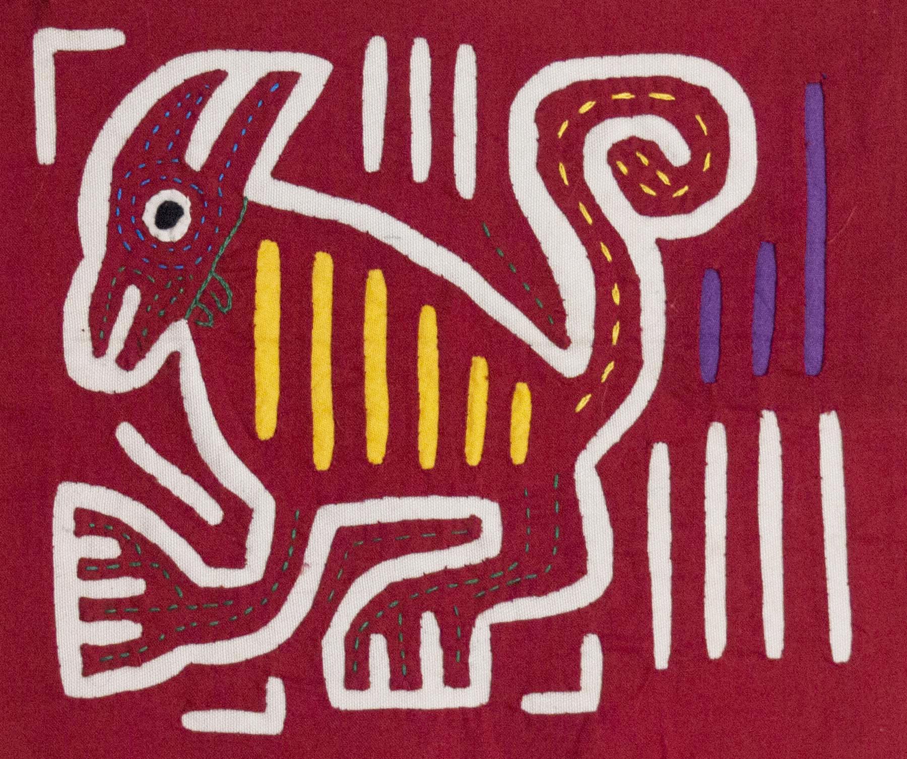 The Mola, or Molas, is a hand-made textile that forms part of the traditional women's clothing of the Kuna People of Panama. Mola textiles originate from a long tradition of body painting and it was only after colonisation by the Spanish that the Kuna began to transfer their traditional geometric designs onto fabric. It is not known for certain when this technique was first used, but it is assumed that the oldest molas are from the 19th Century. Designs have tended to depict abstractions of flowers, sea animals, birds or popular culture.