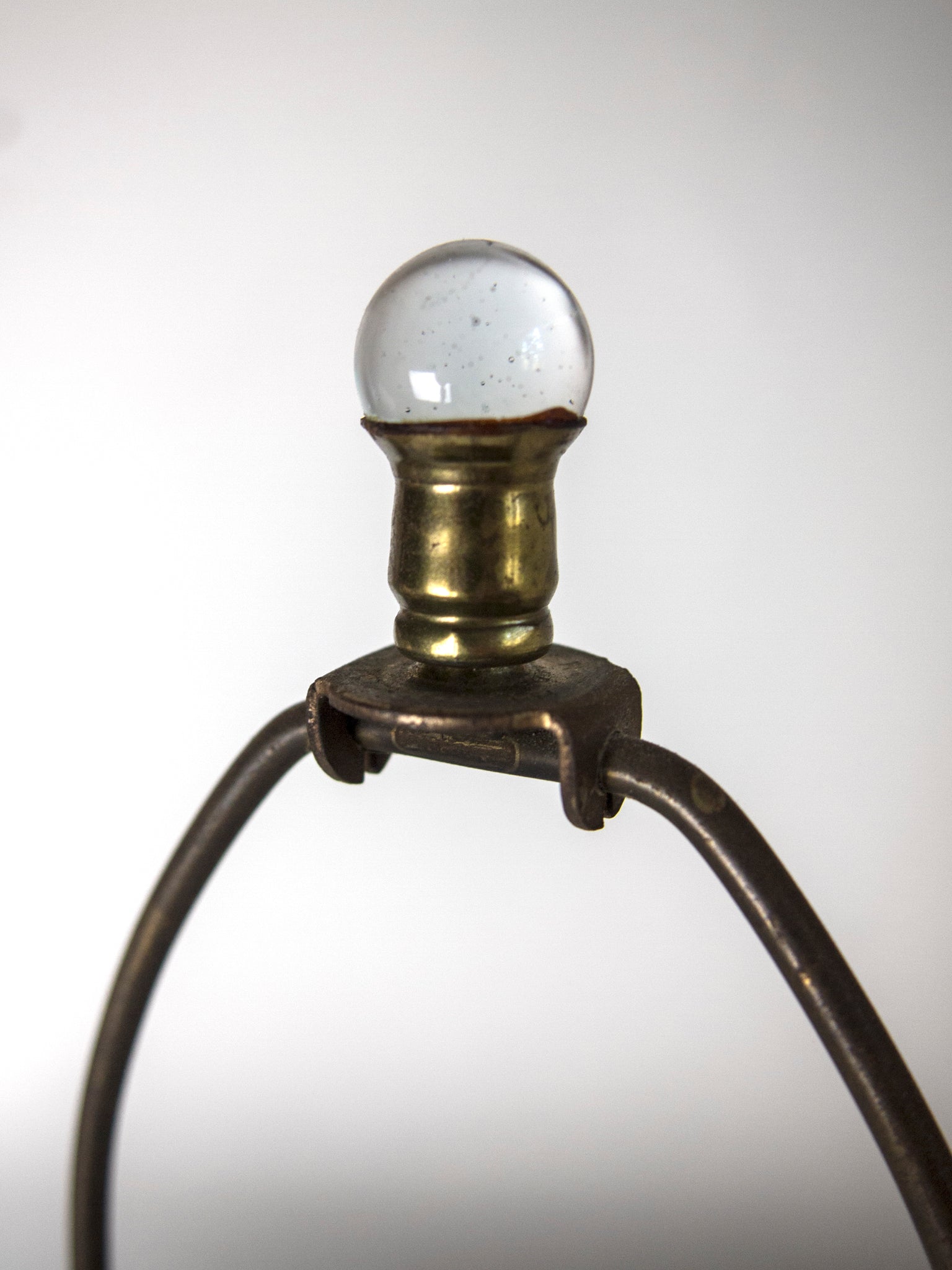 Cut-glass and polished, probably for a lady's bedroom or dressing table, with rare brass shade carrier with a brass and glass ball finial to top. Requires re-wiring