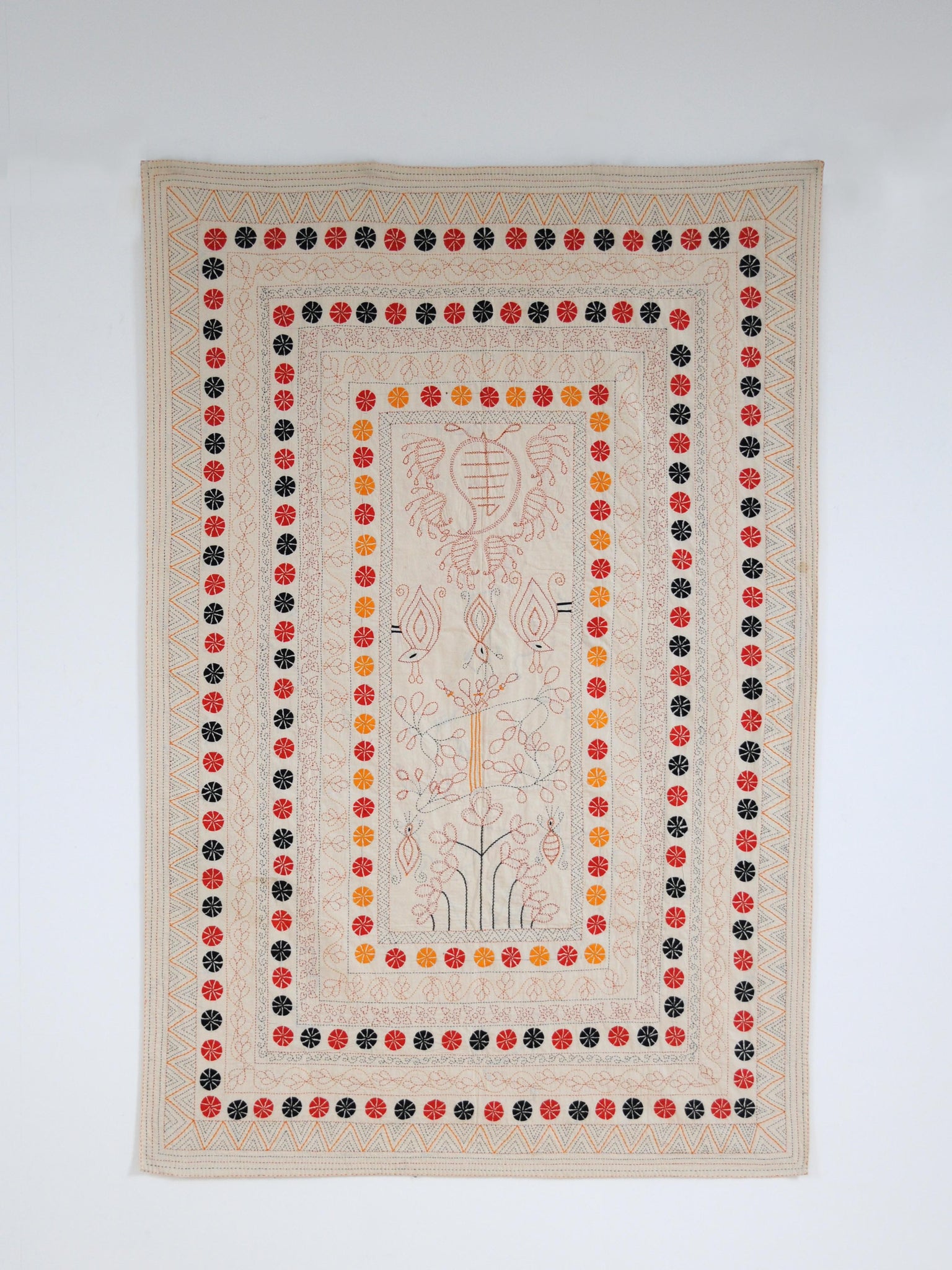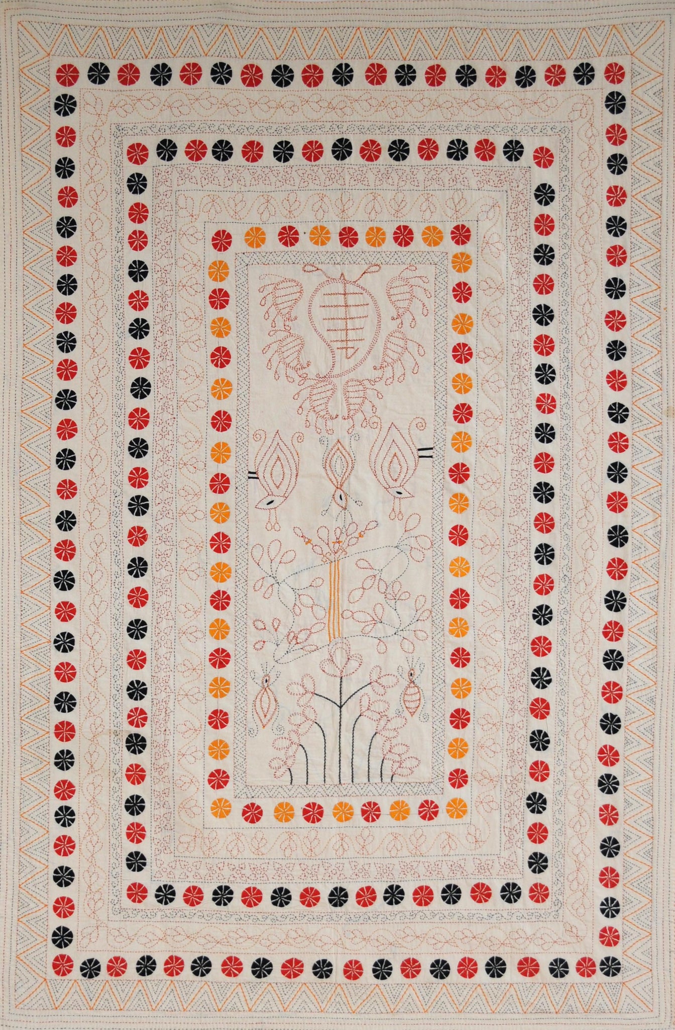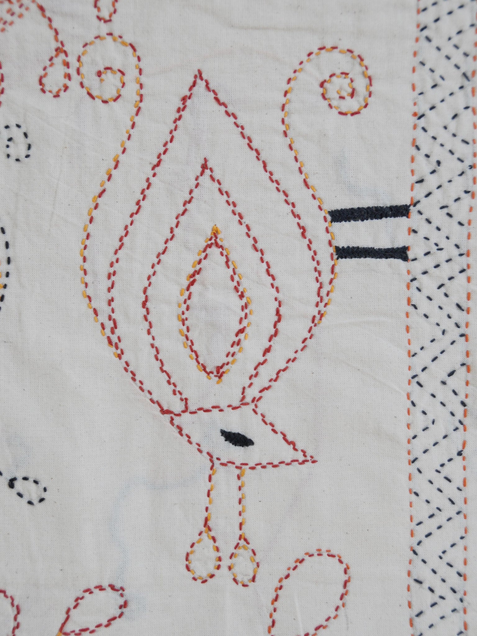 Cream cotton ground cloth with black, red and golden yellow embroidery